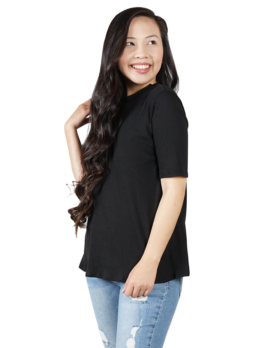 - COMFORTABLE, STRETCHY RIBBED KNIT. Made of 95% rayon and 5% spandex this top is beyond comfortable and easy to wear all day look. Stay confident wearing this flattering top that has stretch in it.