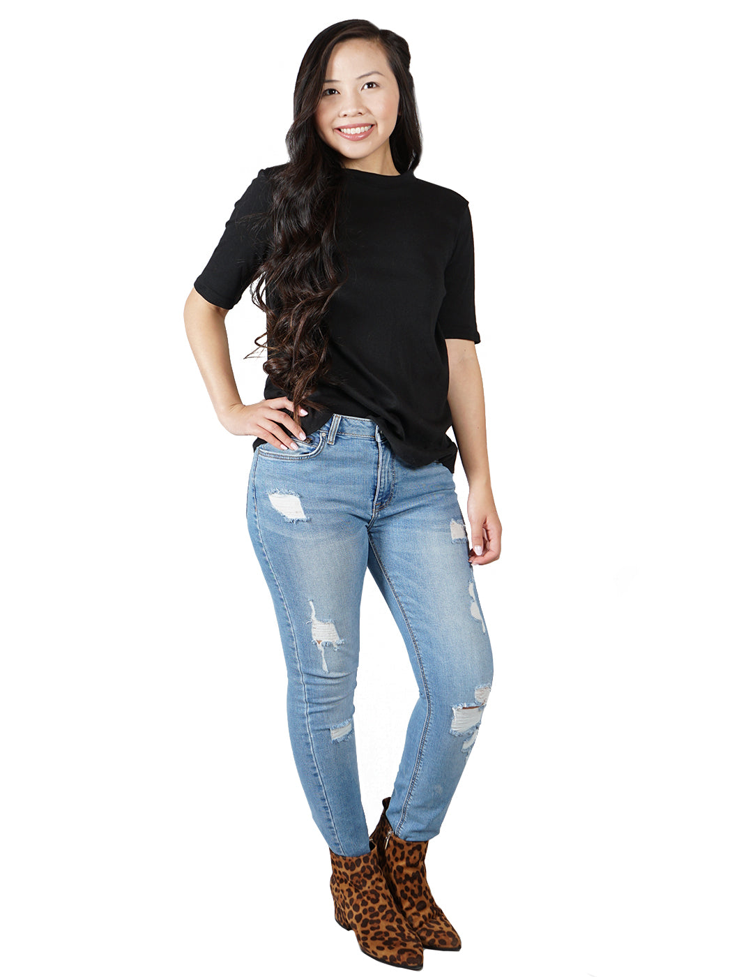 - GUTE, VERSTILE TOP. What is amazing about this top is how it can be dressed up or down so easily! Wear this with a skirt and heels to a party, or with ripped jeans and sneakers to the store. Great to wear all year round, just add a jacket for colder weather.