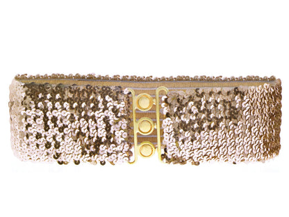 - GLAMOROUS FASHION ACCESSORY Add an extra layer of sparkle to your our outfit with this wide decorative sequin belt! Use the comfortable elastic band to cinch your dresses, skirts and tops creating the finishing touch your whole look.