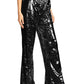 Stretch Waist Sparkly Sequin 70s Disco Flare Wide Leg Pants