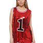 Sparkle Glitter Hip Hop Number 1 T-Shirt Top Blouse Tunic Sequins Basketball Tank Vests
