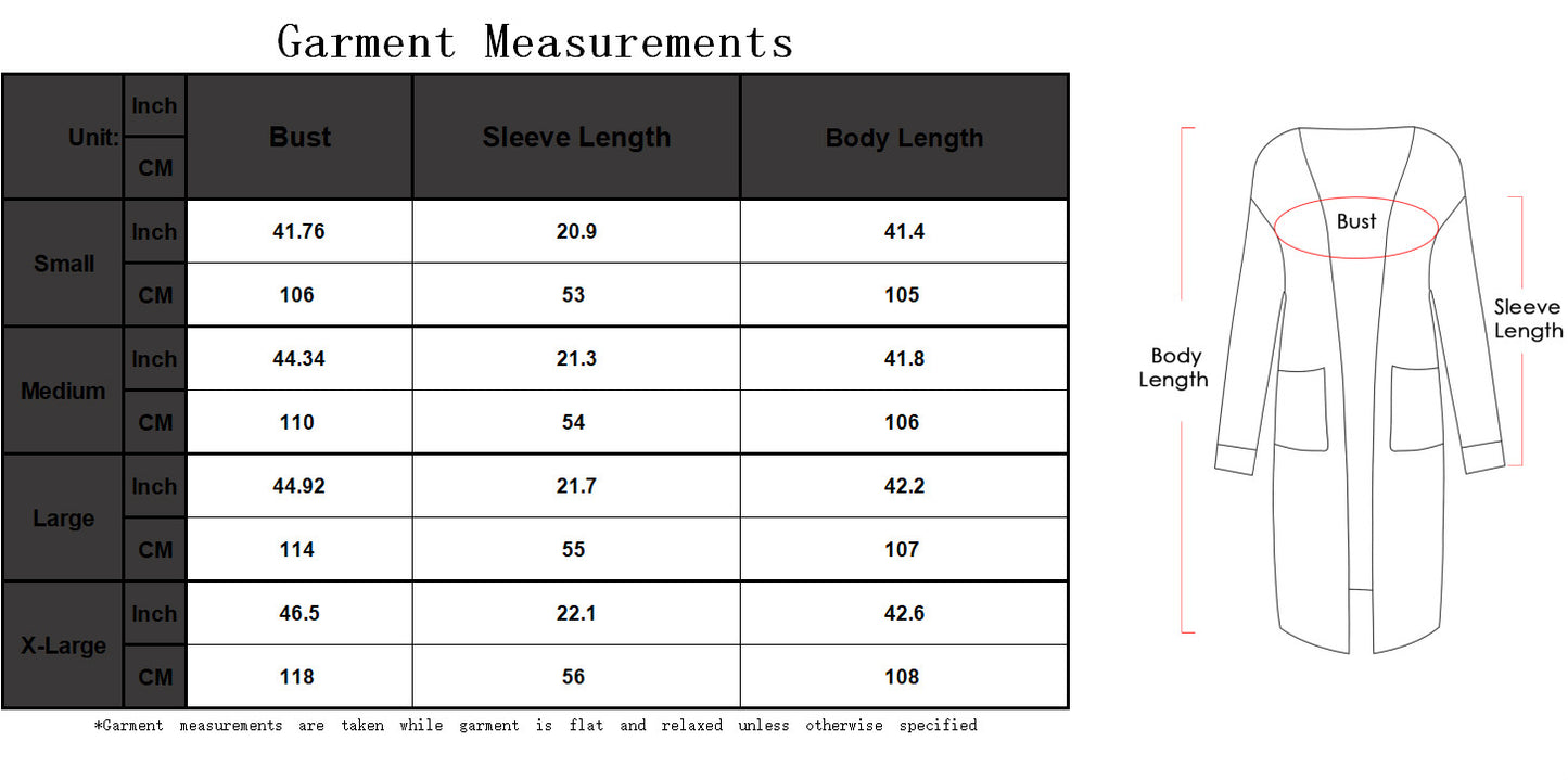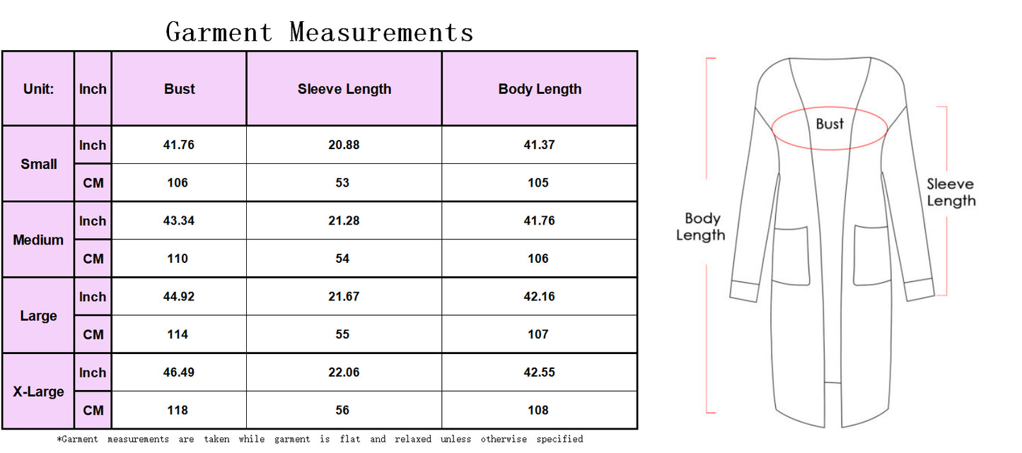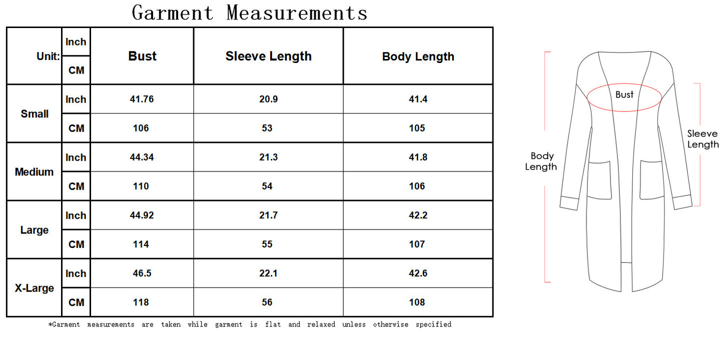 - Sizes-Long Cardigan Sweaters for Women are available in a variety of sizes to suit different needs. Great fit for every body shape. Please check our size details before purchasing. If you want to be a little looser, please choose a size that is 1~2 larger than your size.