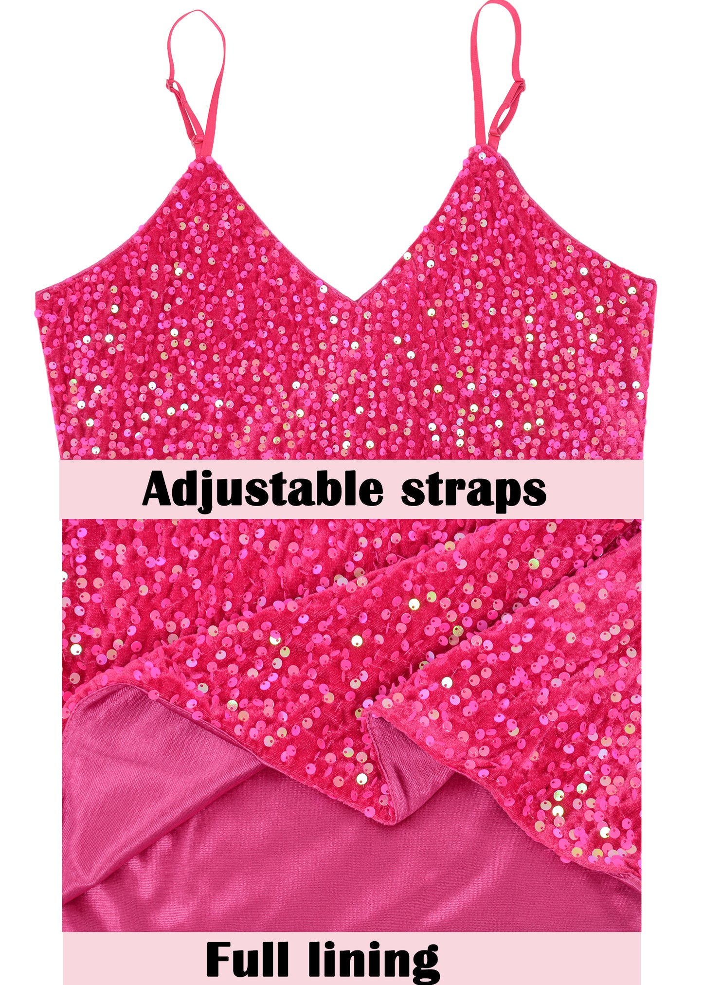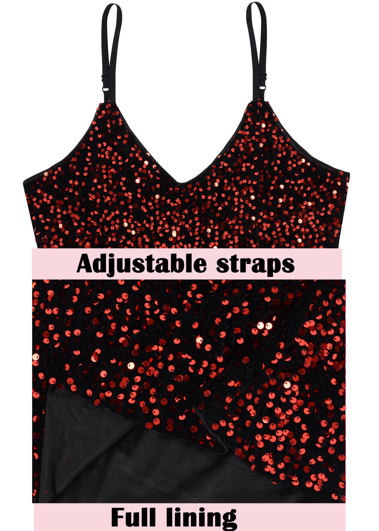 Features: Sequin sleeveless tank top, scoop neck, racer back,adjustable straps, v neck, sequins, fit, lightweight, slight elasticity. The adjustable elastic straps and soft lining ensure a more comfortable and personalized fit.