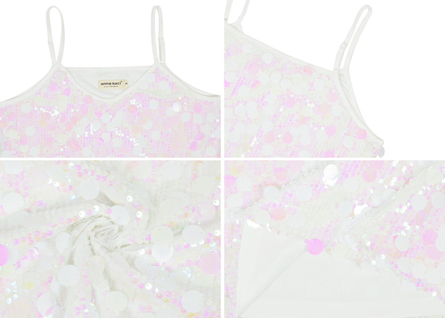 Anna-Kaci Womens Sequin Cami Tops Sleeveless Spaghetti Strap Shimmer Glitter Party Tank Top