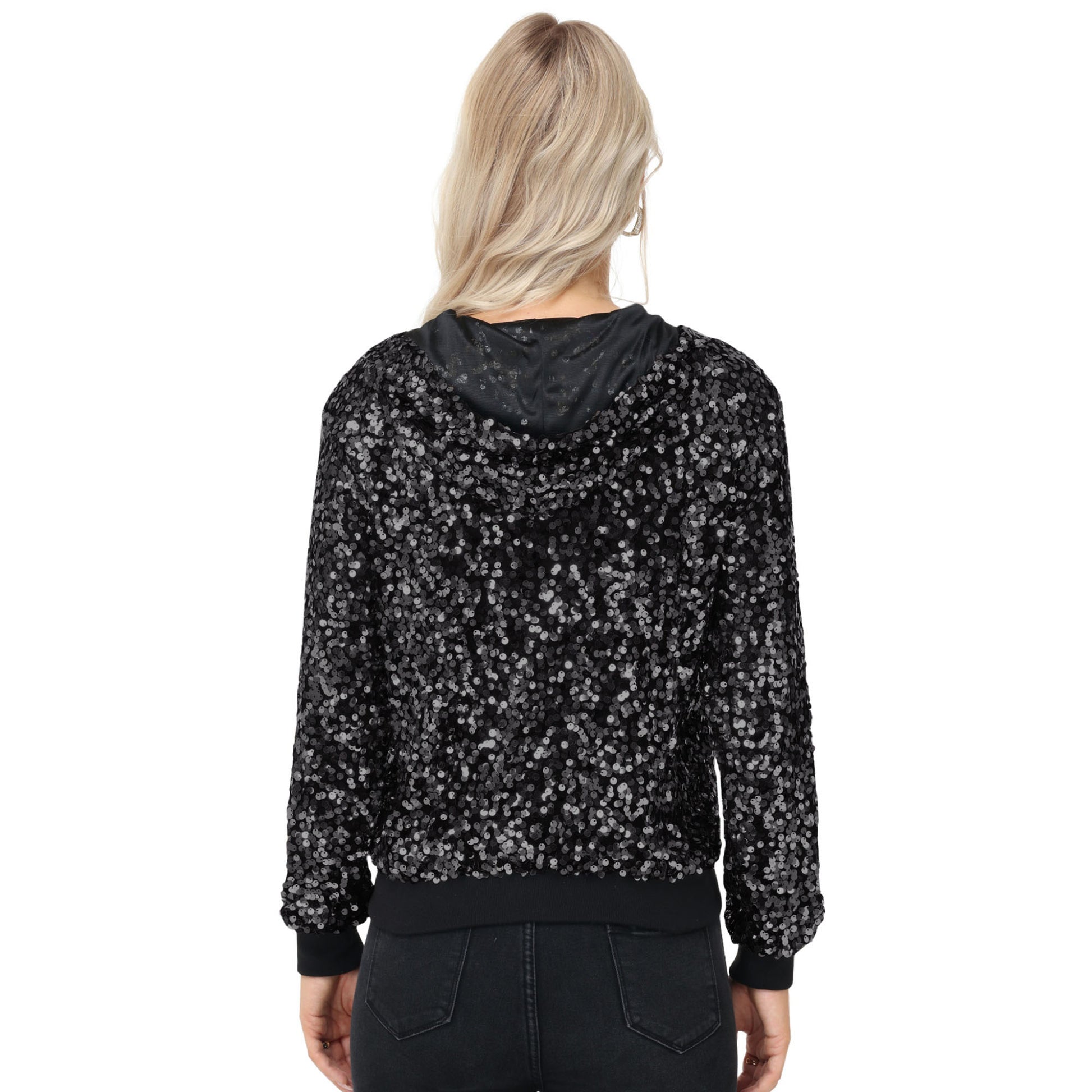 Anna-Kaci Women's Sparkly Sequin Jacket Hooded Glitter Zip Up Bomber Jacket Coat Concert Party Clubwear