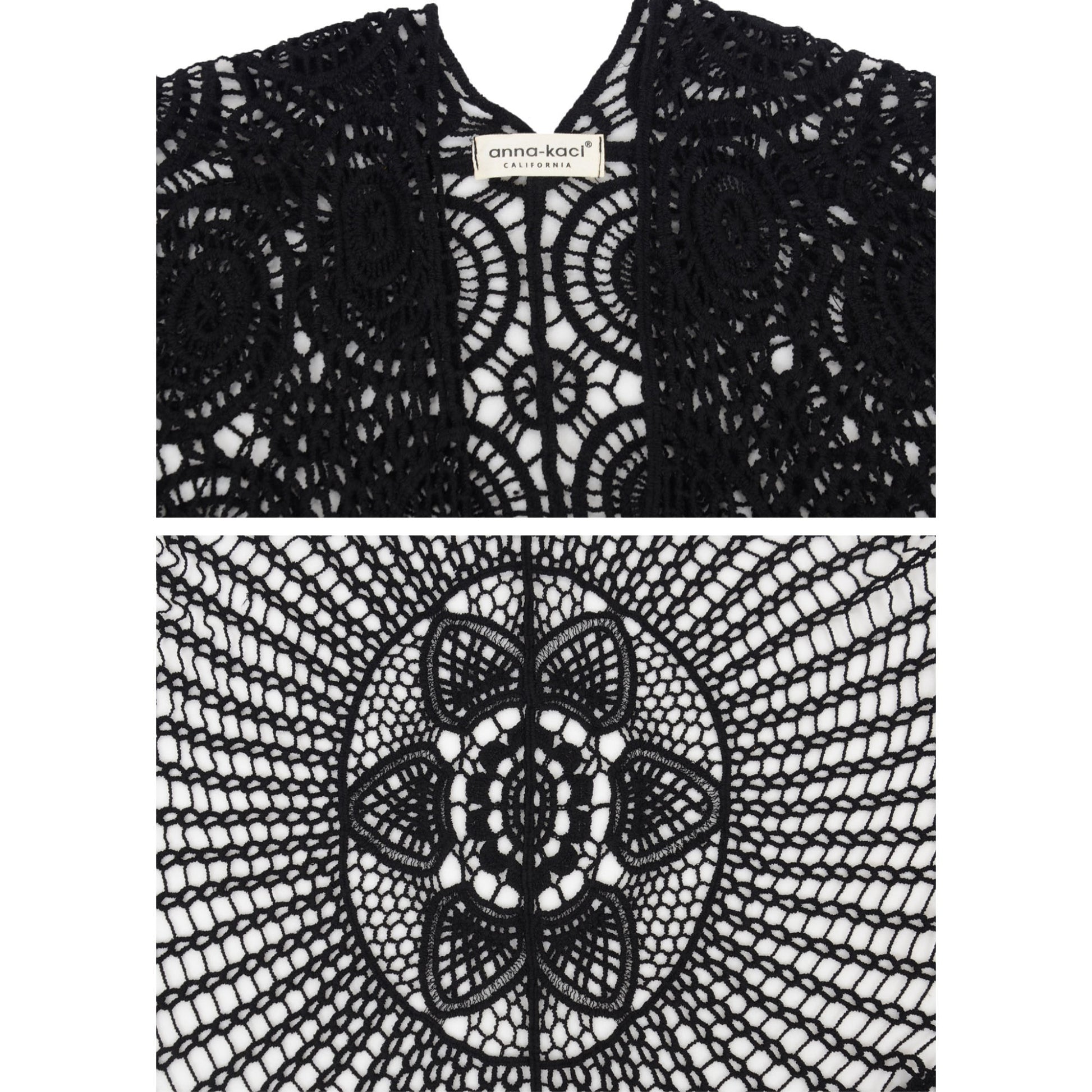 Anna-Kaci Crochet Lace Cardigan Kimono Top with Boho Floral Patterns for Beach